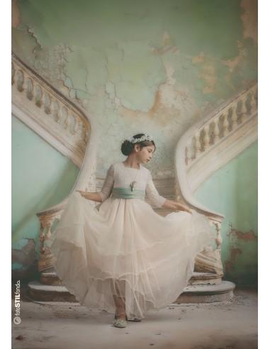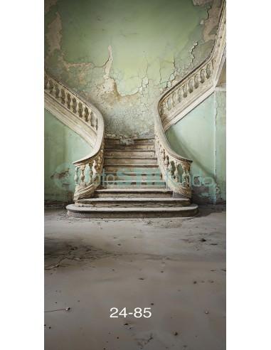 Fondo escalera en tonos verdes. Fondo disponible en calidad lienzo, totalmente mate y disponible en distintos tamaños.