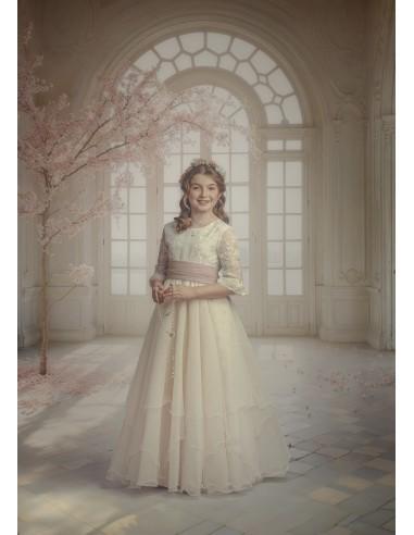 Fondo con tonos muy suaves, ventana con vistas al lago, almendro florecido. Fondo disponible en calidad lienzo, totalmente mate y disponible en distintos tamaños.