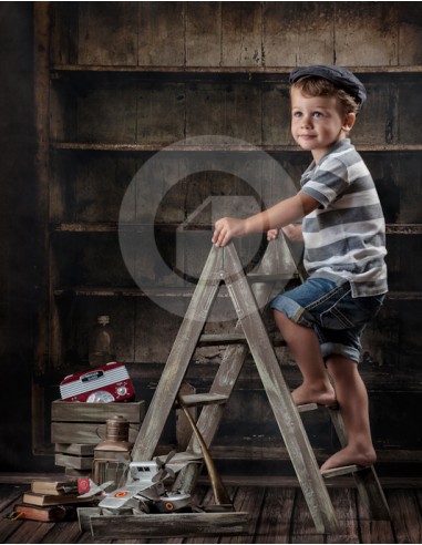 Conjunto de dos escaleras en color marrón envejecido, una pequeña y otra mini fabricadas en madera